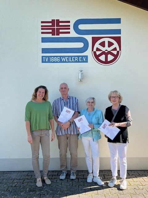 In Rahmen des Stiftungsfestes wurden wieder Vereinsmitglieder für ihre langjährige Vereinszugehörigkeit beim TV Weiler durch die 1. Vorsitzende Petra Höhn, 2. Kassenwartin Corinna Sittek und 2. Geschäftsführerin Dorothee Heinrich geehrt.
